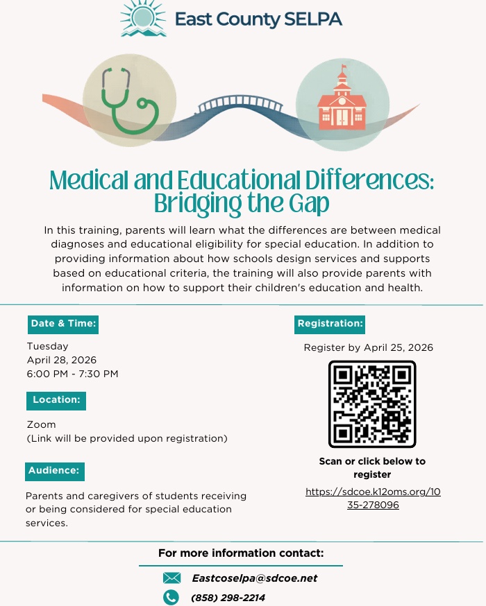 East County SELPA CAC page for information on meeting dates and locations and for contact information.